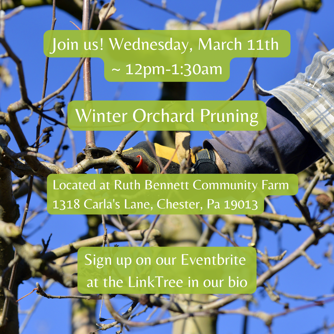 This on-farm workshop will demonstrate winter fruit tree pruning for many diverse fruit trees and then includes hands-on experience practicing winter fruit tree pruning together at a community farm. Please dress in layers and wear or bring footwear that can get wet or muddy. This is mainly an outdoor event.